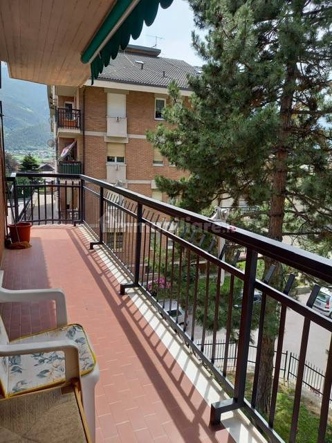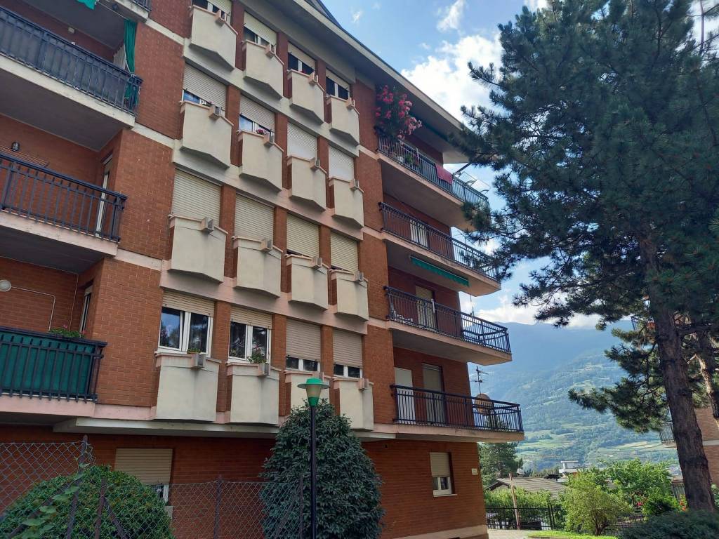 Ad Aosta, regione Chabloz, luminoso appartamento composto da ingresso, ampio soggiorno dal quale si accede al balcone, cucina abitabile con terrazzo pranzabile, 2 camere matrimoniali, bagno, cantina e posto auto condominiale. L’appartamento viene venduto parzialmente arredato con possibilità di acquistare anche il box auto.