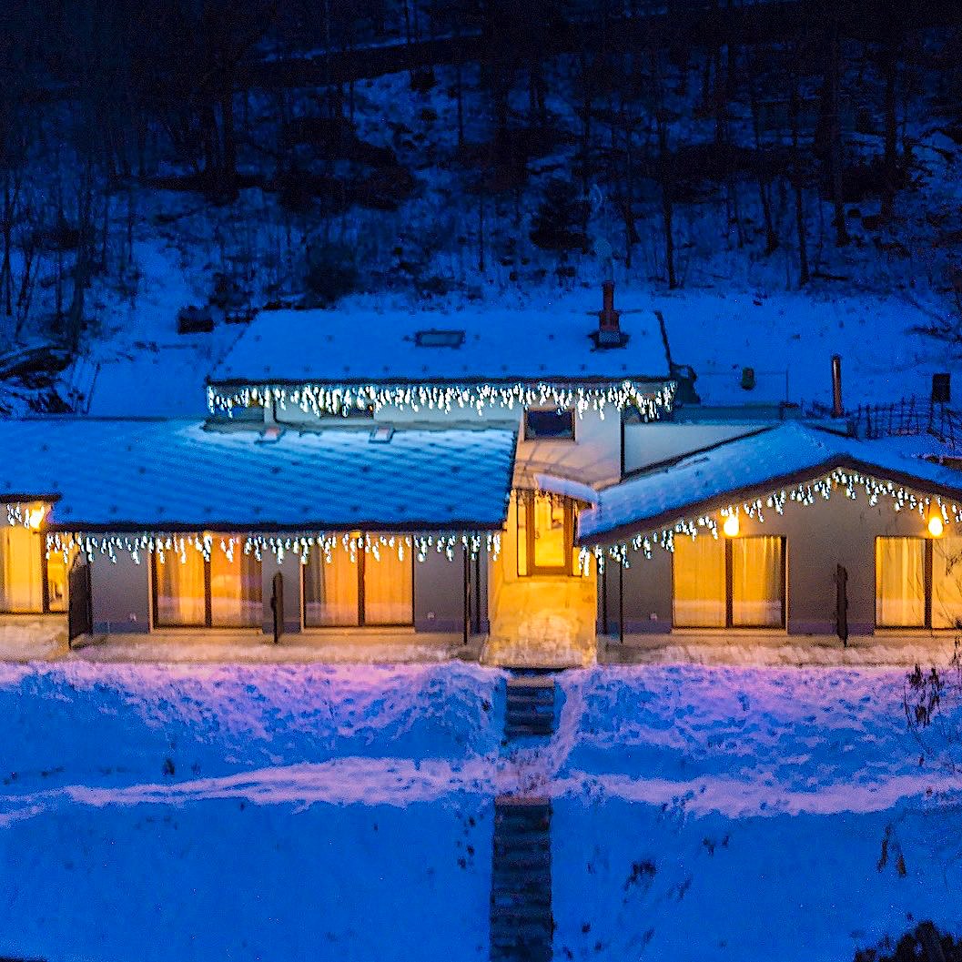 L’immobile, circondato dal verde del bosco di faggi e castagni, dispone di un ampio e panoramico giardino, tutte le camere hanno un terrazzino antistante, cucina attrezzata e dotata delle ultime tecnologie, reception, sala ospiti, sala colazione e pranzo, un garage interrato comodo ed accessibile fino a 10 auto e, infine, una SPA di assoluta eleganza e rilassatezza.